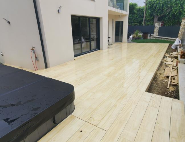 Intervention dans le 51 secteur Marne à Coulommes-La-Montagne 51390, pour la construction d'une terrasse en bois acétylé, l'Accoya.