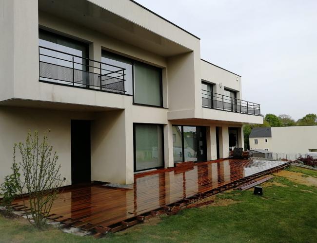 Woodpecker vous présente ici une création de terrasse en bois exotique IPE à Reims, 51 secteur Marne, projet pendant lequel nous avons pu agréablement profiter de la vue de cette magnifique maison d'architecte.